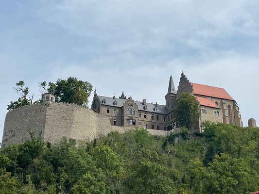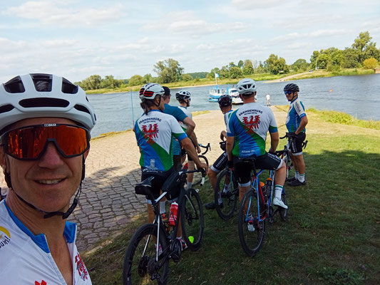 Das wollten am vergangenen Wochenende die 10 Radrenner und die 2 Begleitpersonen aber dann auch genau wissen und machten sich in den frühen Morgenstunden auf den Weg nach Thüringen. Die erste Zwischenstation war nach knapp 80 km die Elbfähre Barby. Hier wurden die ersten Kalorien „nachgetankt“, bevor die nächste Pause unterhalb vom Schloss Mansfeld