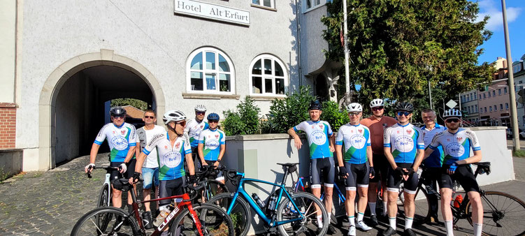 Traditionell ging es in der Vergangenheit für die Radsportler des BSC Süd 05 stets an die Ostsee nach Rostock oder wie im letzten Jahr nach Wismar. Aber mangels ausreichender Übernachtungsmöglichkeiten (nicht lukrativ für eine Nacht) musste umdisponiert werden. Und so war dieses Mal der Süden das Ziel. Aus der Fischbrötchentour wurde nun kurzentschlossen die Bratwurstbrötchentour ins Leben gerufen und die Grillwürste sollen ja bekanntlich in Erfurt sehr gut schmecken!